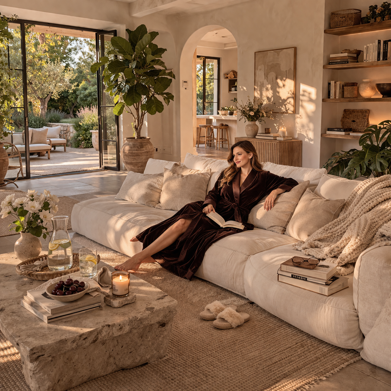 Die Stoffe, die wir wählen, sind von außergewöhnlicher Weichheit und natürlicher Qualität. Sie umhüllen den Körper mit einer Selbstverständlichkeit, die man nicht erklären muss – nur spüren.
